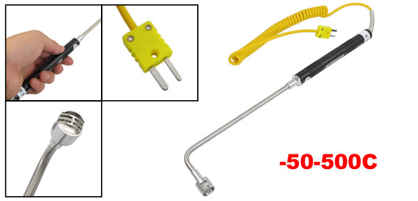 K Type Yellow Cable Curved Head Temperature Sensor Thermocouple Probe -50-500C