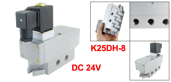 Product Name Solenoid Valve Model No. K25DH-8 Position & Way Number Two Position Five Way Working Medium Compressed Air with Oil Mist Operating Temperature Range 5-50°C Relative Humidity <=85% Working Pressure 0-0.8MPa Working Voltage DC 24V Threaded Hole Diameter M12 x 1.25 Mounting Hole Diameter 8.5mm / 0.33" Overall Size(Approx.) 128 x 54 x 127mm / 5.0" x 2.1" x 5.0"(L*W*H) Weight 821g Package Content 1 x Solenoid Valve - Reviews