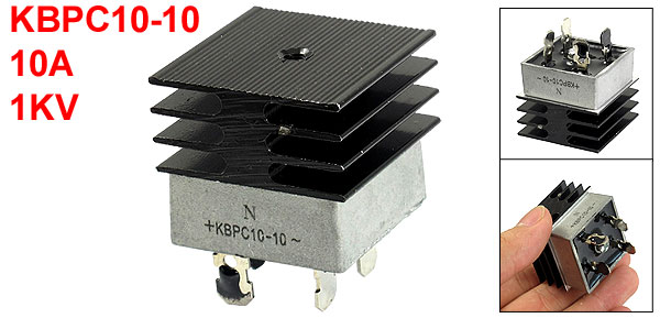 Product Name Single Phase Bridge Rectifier w Heatsink Model No. KBPC10-10 Output Current 10A Repetitive Peak Reverse Voltage 1KV Pitch Distance 18mm/0.7"