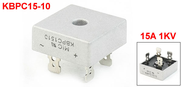 Product Name Bridge Rectifier Model KBPC15-10 Forward Current 15A Repetitive Reverse Voltage 1KV Pitch Distance 18mm/0.7"