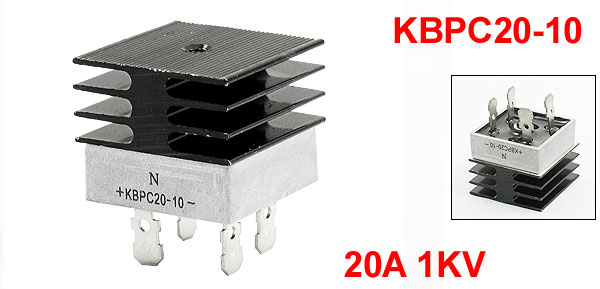 Product Name Single Phase Bridge Rectifier w Heatsink Model No. KBPC20-10 Output Current 20A Repetitive Peak Reverse Voltage 1KV Pitch Distance 18mm/0.7"