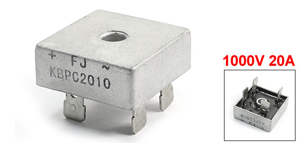 Product Name Bridge Rectifier Model KBPC2010 Repetitive Reverse Voltage 1000V Forward Current 20A Dimension(Not Included Pin) 2.9 x 2.9 x 1.1cm/1.1" x 1.1" x 0.4"(L*W*H) Pin Size 1.1 x 0.6cm/0.43" x 0.24"(L*W) Pin Hole Dia 2mm/0.08" Centre Hole Dia 5mm/0.2" Material Ceramic, Metal Color As Picture Show Net Weight 26g Package Content 1 x Bridge Rectifier - Reviews