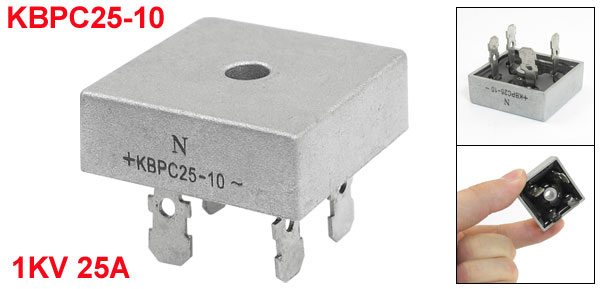 KBPC25-10 1000V 25A Single Phase Bridge Rectifier Half-Wave Silver Tone