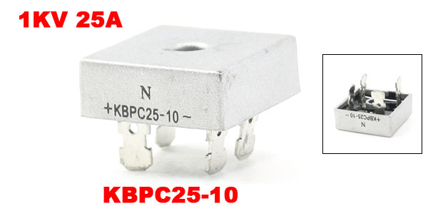 Product Name Bridge Rectifier Model KBPC25-10 Forward Current 25A Repetitive Reverse Voltage 1KV Pitch Distance 18mm/0.7"