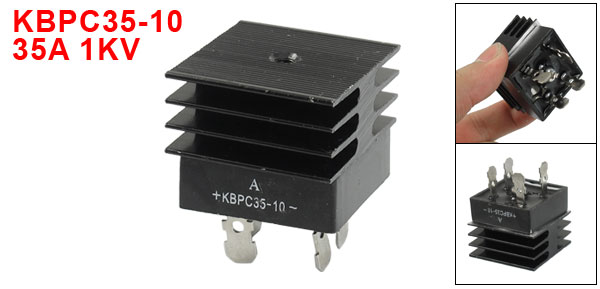 Product Name Single Phase Bridge Rectifier w Heatsink Model No. KBPC35-10 Output Current 35A Repetitive Peak Reverse Voltage 1KV Pitch Distance 18mm/0.7"