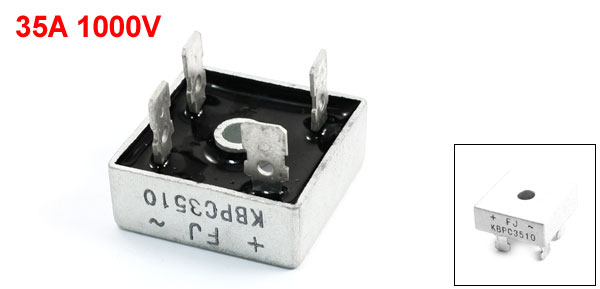 Product Name Bridge Rectifier Model KBPC3510 Repetitive Reverse Voltage 1000V Forward Current 35A Dimension(Not Included Pin) 2.9 x 2.9 x 1cm/1.1" x 1.1" x 0.4"(L*W*H) Pin Size 1 x 0.6cm/0.4" x 0.24"(L*W) Pin Hole Dia 2mm/0.08" Centre Hole Dia 6mm/0.24" Material Ceramic, Metal Color As Picture Show Net Weight 18g Package Content 1 x Bridge Rectifier - Reviews