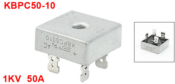 Product Name Bridge Rectifier Model KBPC50-10 Forward Current 50A Repetitive Reverse Voltage 1KV Pitch Distance 17mm/0.7"