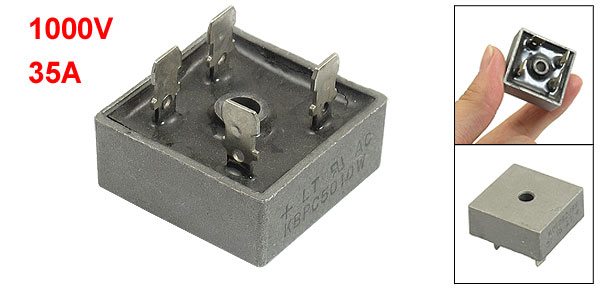 Product Name Bridge Rectifier Model KBPC5010 Average Forward Rectified Current 35A Recurrent Peak Reverse Voltage 1000V Max. DC Blocking Voltage 1000V Terminal Size 6.5 x 8mm/ 0.25" x 0.3"(W*L) Dimension 31 x 31 x 13mm/ 1.2" x 1.2" x 0.5" (L*W*T) Mounted Hole Dia. 5.4mm/ 0.2" Material Resin, Metal Color Gray, Silver Tone Net Weight 27g Package Content 1 x Bridge Rectifier - Reviews