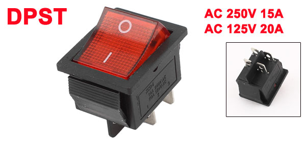 DetailsKCD4 DPST 4Pin 2 Position On/Off Rocker Switch Red Light AC 15A/250V 20A/125V  Product Name Rocker Switch Color Black Type KCD4 (DPST) Power AC 15A/250V 20A/125V Total Size 30 x 25 x 30mm/ 1.1 x 1 x 1.1inch (L*W*H) Net Weight 12g Package Content 1 x Rocker Switch