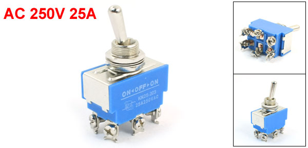KN25-203 DPDT 3 Positions ON/OFF/ON Locking Toggle Switch Blue AC250V 25A