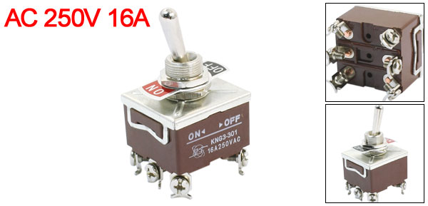 Product Name Toggle Switch Model KNG3-301 Type DPST Voltage & Current AC250V 16A Position 2 Position(ON/OFF) Mounting Hole Diamter 12mm / 0.47" Main Body Size 33 x 28 x 20mm / 1.3" x 1.1" x 0.8"(L*W*H) Overall Height 58mm / 2.3" Material Metal & Resin Color As Picture Shown Weight 47g Package Content 1 x Toggle Switch - Reviews