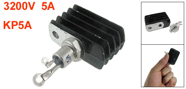 Product Name Phase Control Thyristor Model No. KP5A Average Forward Current 5A Repetitive Peak Reverse Voltage(VRRM) 3200V Heatsink Size 42 x 20 x 23mm / 1.65" x 0.8" x 0.9"(L*W*H) Stud Hole Diameter 3mm / 0.12"