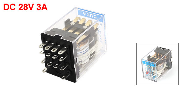 KRM4F DC 28V 3A Coil 14 Pin 4PDT Green LED Indicator Light Power Relay