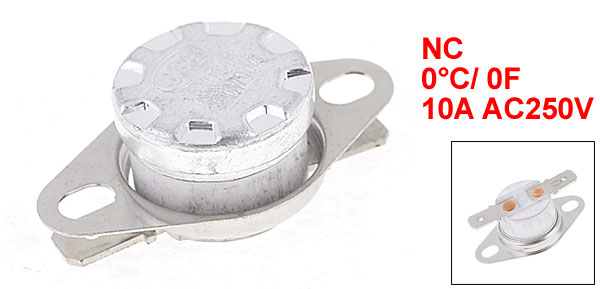 Product Name Temperature Themostat Switch Model.No KSD301 Action Type Normally Close (NC) Action Temperature 0°C/ 0F Current, Voltage 10A, AC250V Size 3.4 x 1.9 x 1.2cm/1.3" x 0.75" x 0.47"(L*W*H) Material Metal, Plastic Color Black, Silver Tone Net Weight 7g Package Content 1 x Temperature Themostat Switch - Reviews