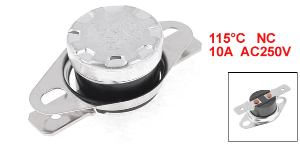 Product Name Temperature Themostat Switch Model.No KSD301 Action Type Normally Close (NC) Action Temperature 115°C/ 239F Current, Voltage 10A, AC250V Size 3.4 x 1.9 x 1.2cm/1.3" x 0.75" x 0.47"(L*W*H) Material Metal, Plastic Color Black, Silver Tone Net Weight 7g Package Content 1 x Temperature Themostat Switch - Reviews