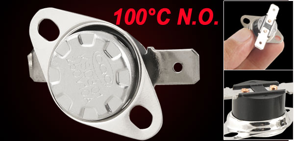 Product Name Temperature Switch Thermostat Model No. KSD301 Action Type Normal Open (N.O.) Action Temperature 100C/212F Voltage 250V 10A Circuit Resistance 50 Mohm Insulation resistance 100 Mohm Size (Each) 3.4 x 1.2cm / 1.3" x 0.47" (L*H) Mounting Hole Spacing 2.4cm / 0.94" Material Metal, Plastic Color Black, Silver Tone Net Weight 5g Package Content 1 x Temperature Switch Thermostat - Reviews