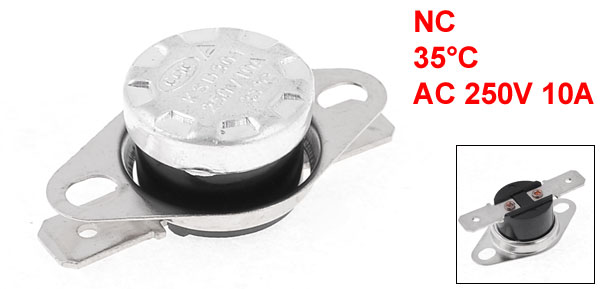 Product Name Temperature Themostat Switch Model.No KSD301 Action Type Normally Close (NC) Action Temperature 35°C/ 95F Current, Voltage 10A, AC250V Size 3.4 x 1.9 x 1.2cm/1.3" x 0.75" x 0.47"(L*W*H) Material Metal, Plastic Color Black, Silver Tone Net Weight 7g Package Content 1 x Temperature Themostat Switch - Reviews