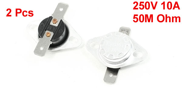 Product Name Temperature Switch Model KSD301 Action Type NC (Normal Close) Action Temperature 70C/158F Voltage 250V 10A Circuit Resistance 50M Ohm Insulation Resistance 100M Ohm Size 3.3 x 3.3 x 1.1 cm / 1.3" x 1.3" x 0.4" (L*W*H) Material Metal, Plastic Color Silver Tone, Black Weight 9g Package 2 x Temperature Switch - Reviews