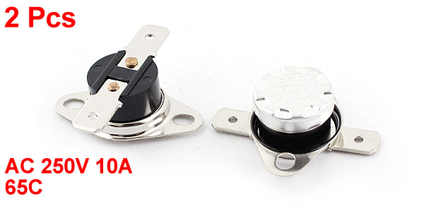 Product Name Thermostat / Temperature Switch Rated AC 250V 10A Net Weight 10g Action Type NO Normal Open Country of Manufacture CHINA Package Content 2Pcs x Thermostat Material Metal Total Size 34 x 19 x 12mm/1.3" x 0.75" x 0.47"(L*W*H) Temperature Range 65C - Reviews