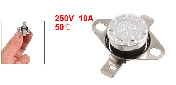 Product Name Temperature Switch Model.No KSD301 Action Type Normal Close(NC) Action Temperature 50C/122F Voltage 10A, AC250V Circuit Resistance 50 Mohm Insulation resistance 100 Mohm Size(Each) 3.4 x 1.2cm/1.3" x 0.47"(L*H) Material Metal, Plastic Color Black, Silver Tone Net Weight 6g Package Content 1 x Temperature Switch Themostat - Reviews