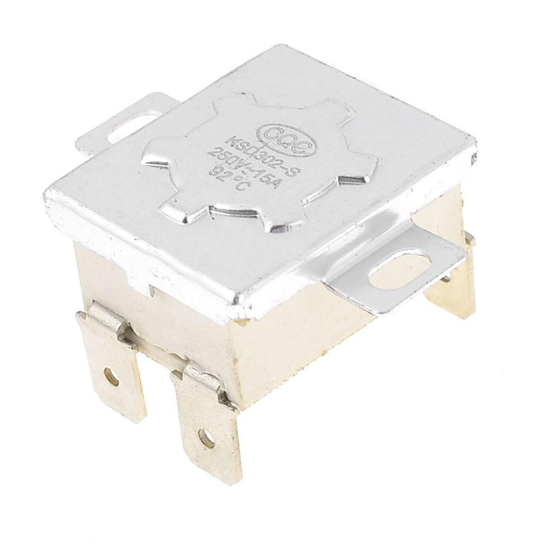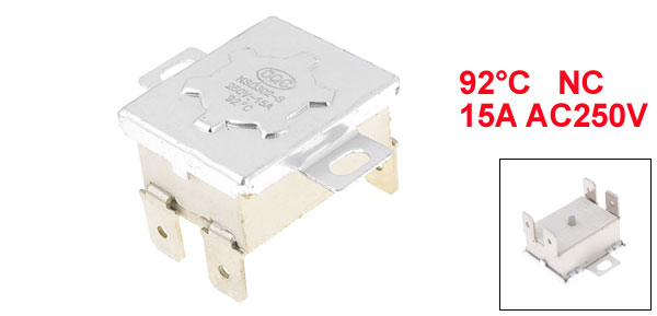 Product Name Temperature Themostat Switch Model.No KSD302-S Action Type Normally Close (NC) Action Temperature 92°C/ 197.6F Current, Voltage 15A, AC250V Size 2.7 x 2.3 x 2.1cm/ 1.06" x 0.9" x 0.83"(L*W*H) Material Metal, Plastic Color White, Silver Tone Net Weight 11g Package Content 1 x Temperature Themostat Switch - Reviews