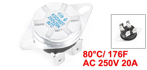 KSD302T 80 Celsius 176F Temperature NC Control Thermostat Switch AC 250V 20A