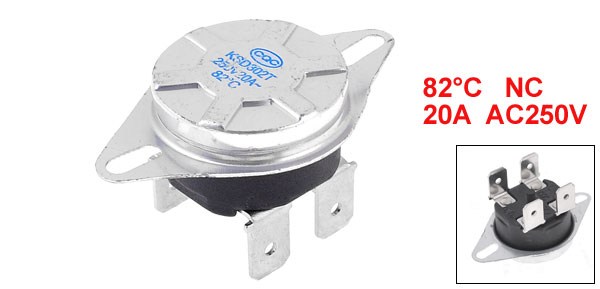 Product Name Temperature Themostat Switch Model.No KSD302T Action Type Normally Close (NC) Action Temperature 82°C/ 179.6F Current, Voltage 20A, AC250V Size 4.4 x 2.7 x 2.3cm/ 1.7" x 1.06" x 0.9"(L*W*H) Material Metal, Plastic Color Black, Silver Tone Net Weight 12g Package Content 1 x Temperature Themostat Switch - Reviews