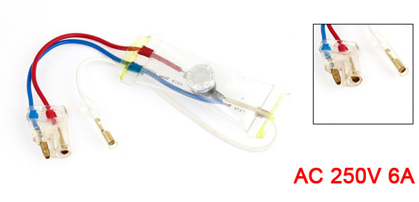 DetailsKSD303-A 3 Wire Leads -7C Normal Open Refrigerator Defrost Thermostat AC250V 6A  Product Name Refrigerator Defrost Thermostat Model No. KSD303-A Action Type NO (Normal Open) Action Temperature -7 Celsius Degree Electrical Ratings AC 250V 6A Tube Size 9.2 x 3.3cm / 3.6" x 1.3" (L*Max.W) Each Wire Dia. 2.5mm / 0.01" Total Length 44cm / 17.3" Material Metal, Plastic Color As Picture Shown Net Weight 20g Package 1 x Refrigerator Defrost Thermostat