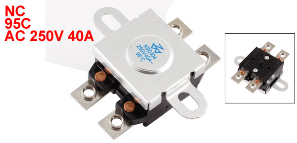 Product Name Temperature Control Switch Thermostat Model.No KSD304 Action Type NC Action Temperature 95C Voltage AC 250V 40A Size(Each) 5 x 4.7 x 1.8cm/2" x 1.9" x 0.7"(L*W*T) Mounted Size 8 x 4mm/0.31" x 0.16"(L*W) Mounting Hole Center Distance 3.9cm/1.5" Material Metal, Plastic Color Black, Silver Tone Net Weight 23g Package Content 1 x Temperature Control Switch Thermostat - Reviews
