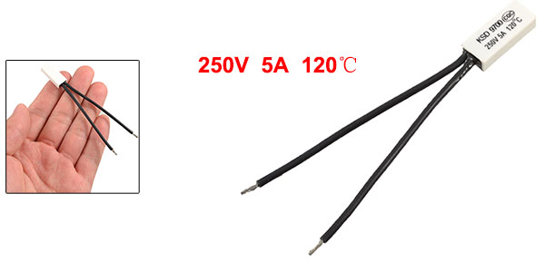 Product Name Temperature Control Switch Model.No KSD9700 Material Plastic Contact NC(Normal Close) Rated Voltage 250V Current 5A Max Rated Disconnection Temperature 120C Color Black, White Cable Length 8cm/ 3.1" Head Dimension 20 x 8 x 4mm/0.78" x 0.31" x 0.16"(L*W*T) Net Weight 3g Package Content 1 x Temperature Control Switch - Reviews