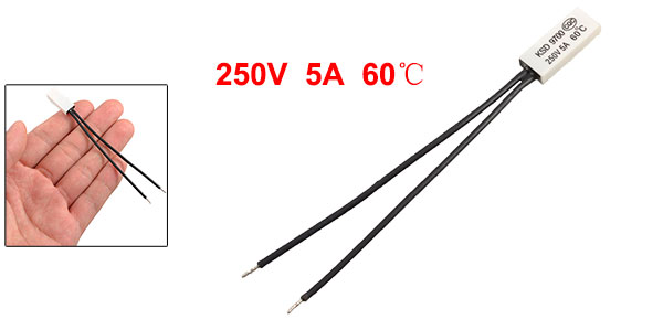 Product Name Temperature Control Switch Model.No KSD9700 Material Plastic Contact NC(Normal Close) Rated Voltage 250V Current 5A Max Rated Disconnection Temperature 60C Color Black, White Cable Length 8cm/ 3.1" Head Dimension 20 x 8 x 4mm/0.78" x 0.31" x 0.16"(L*W*T) Net Weight 3g Package Content 1 x Temperature Control Switch - Reviews