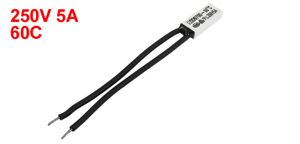 Product Name Temperature Control Switch Material Plastic Shell, Metal Model KSD9700 Type NC(Normal Close) Contact Capacity 250V 5A Max Rated Disconnection Temperature 60C Color Black, White Contact Stick Length 70mm/2.7" Head Size 20 x 8 x 4mm/0.8" x 0.3" x 0.15"(L*W*T) Weight 3g Package Content 1 x Temperature Control Switch - Reviews