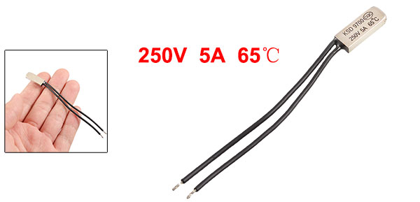 Product Name Temperature Control Switch Model.No KSD9700 Material Plastic, Bimetal Contact NC(Normal Close) Rated Voltage 250V Current 5A Max Rated Disconnection Temperature 65C Color Black, White Cable Length 8cm/ 3.1" Head Dimension 20 x 8 x 3mm/0.78" x 0.31" x 0.12"(L*W*T) Net Weight 4g Package Content 1 x Temperature Control Switch - Reviews