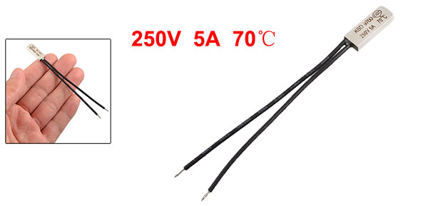 Product Name Temperature Control Switch Model.No KSD9700 Material Plastic, Bimetal Contact NC(Normal Close) Rated Voltage 250V Current 5A Max Rated Disconnection Temperature 70C Color Black, White Cable Length 8cm/ 3.1" Head Dimension 20 x 8 x 3mm/0.78" x 0.31" x 0.12"(L*W*T) Net Weight 4g Package Content 1 x Temperature Control Switch - Reviews