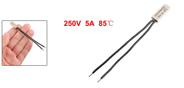 Product Name Temperature Control Switch Model.No KSD9700 Material Plastic, Bimetal Contact NC(Normal Close) Rated Voltage 250V Current 5A Max Rated Disconnection Temperature 85C Color Black, White Cable Length 8cm/ 3.1" Head Dimension 20 x 8 x 3mm/0.78" x 0.31" x 0.12"(L*W*T) Net Weight 4g Package Content 1 x Temperature Control Switch - Reviews