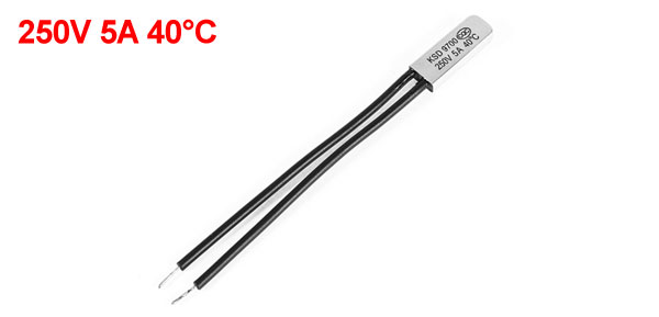Product Name Temperature Control Switch Model.No KSD9700 Material Plastic, Bimetal Contact NC(Normal Close) Rated Voltage & Current 250V 5A Max Rated Disconnection Temperature 40°C Color Silver Tone, Black Cable Length 9.5cm/ 3.7" Head Dimension 20 x 8 x 3mm / 0.79" x 0.24" x 0.12"(L*W*T) Net Weight 3g Package Content 1x Temperature Control Switch - Reviews