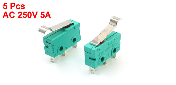 Product Name Micro Switch Model No. KW4-OZ-3 Actuator Type Curved Hinge Lever Rating 5A 250VAC Contact Type SPDT NO NC Hinge Lever Size 20 x 4mm/0.8" x 0.16"(L*W) Fixing Holes Dia. 0.25cm / 0.1“ Total Size 2.3 x 1.8 x 0.6cm/0.9" x 0.7"x 0.24"(L*W*T) Material Plastic & Metal Color Green Net Weight 22g Package Content 10 Pcs x Micro Switch - Reviews