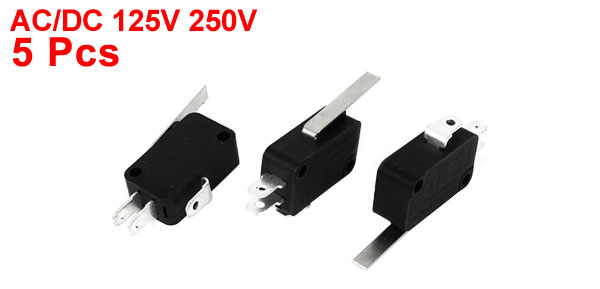 KW8 NO NC AC/DC 125V 250V Long Straight Hinge Lever Micro Limit Switch 5 Pcs