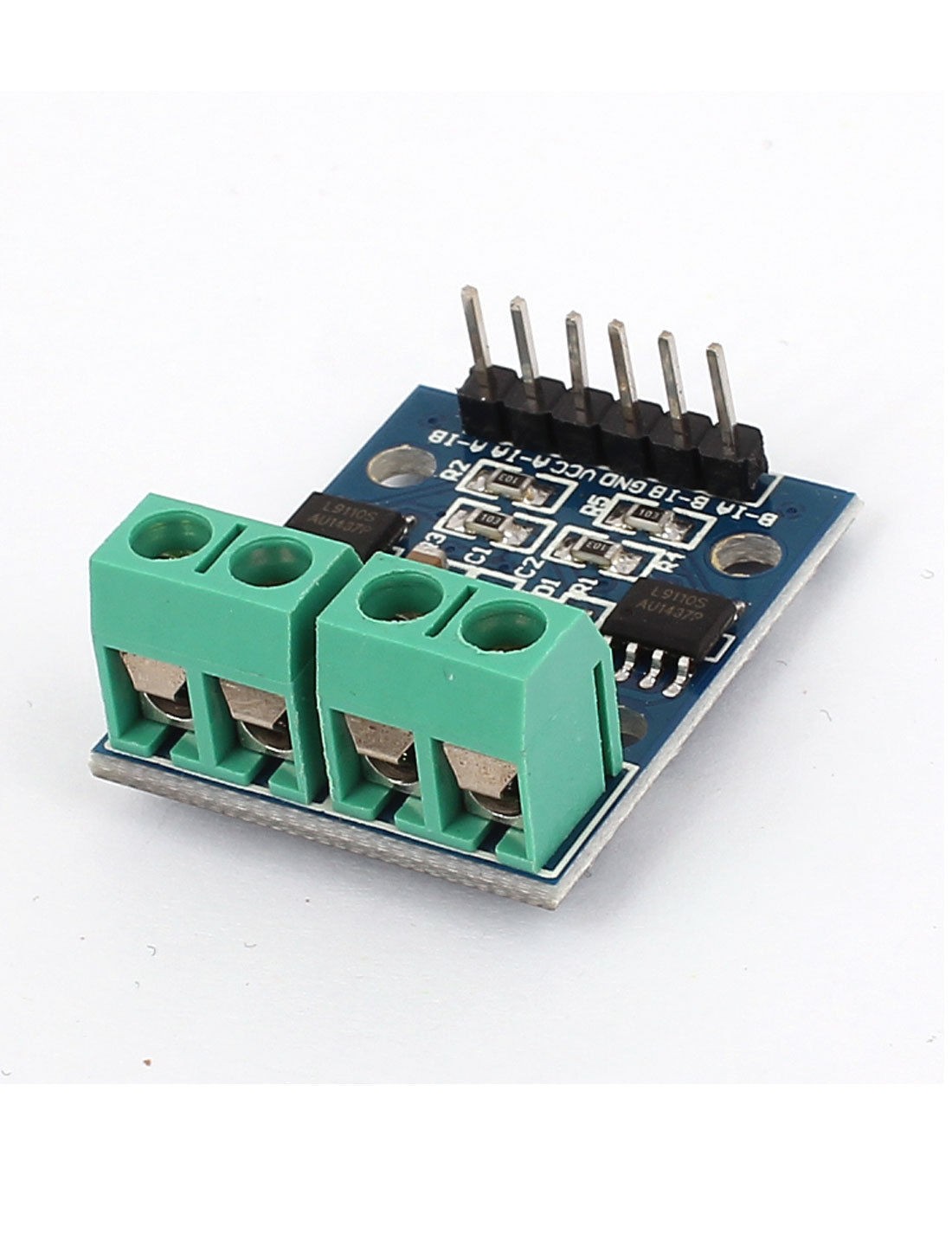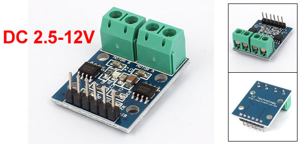 Product Name Motor Driver Module Chip L9110S Voltage DC 2.5-12V Current 800mA PCB Size 2.5 x 2.1cm/1" x 0.8"(L*W) Materials FR-4 Color Green Net Weight 7g Package Content 1 x Motor Driver Module