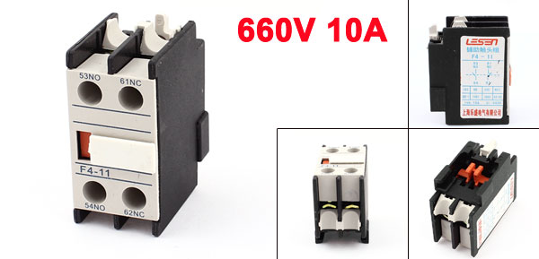Brand DMiotech Net Weight 37g Country of Manufacture CHINA Model LA1-DN11(F4-11) Package Content 1 x Auxiliary Contactor Block Overall Size(Approx.) 48 x 37 x 24mm/1.9" x 1.45" x 0.94"(L*W*H) Screw Terminal Number 4 Material Plastic, Metal, Electrical Parts Ith 10A Ui 660V Auxiliary Contact Type 1NO 1NC - Reviews