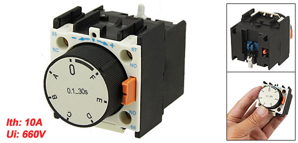 Product Name Time Delay Relay Block Model LA3-R2 Material Plastic, Electrical Parts Main Color Black, White Delay Type Interrupt Circuit Delay Contacts 1NO+1NC Rated Insulation Voltage(Ui) 660V Conventional Thermal Current(Ith) 10A Delay Range 0.1-30s Total Size 4.5 x 5 x 6cm/ 1.8" x 2" x 2.4"(L * W * T) Weight 74g Package Content 1 x Air Time Delay Head - Reviews