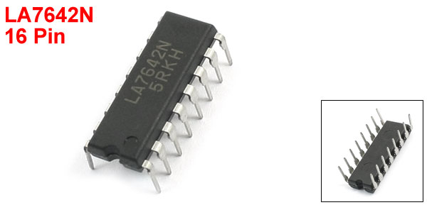 Product Name IC Chip Model Number LA7642N Pin Number 16 Pin Pin Pitch 2.54mm/0.1" Row to Row Distance(Approx) 8mm/0.31" Total Size 19 x 9 x 8mm /0.75" x 0.35" x 0.31" (L*W*H) Color Black, Silver Tone Material Plastic, Metal Net Weight 2g Package Content 1 x IC Chip - Reviews
