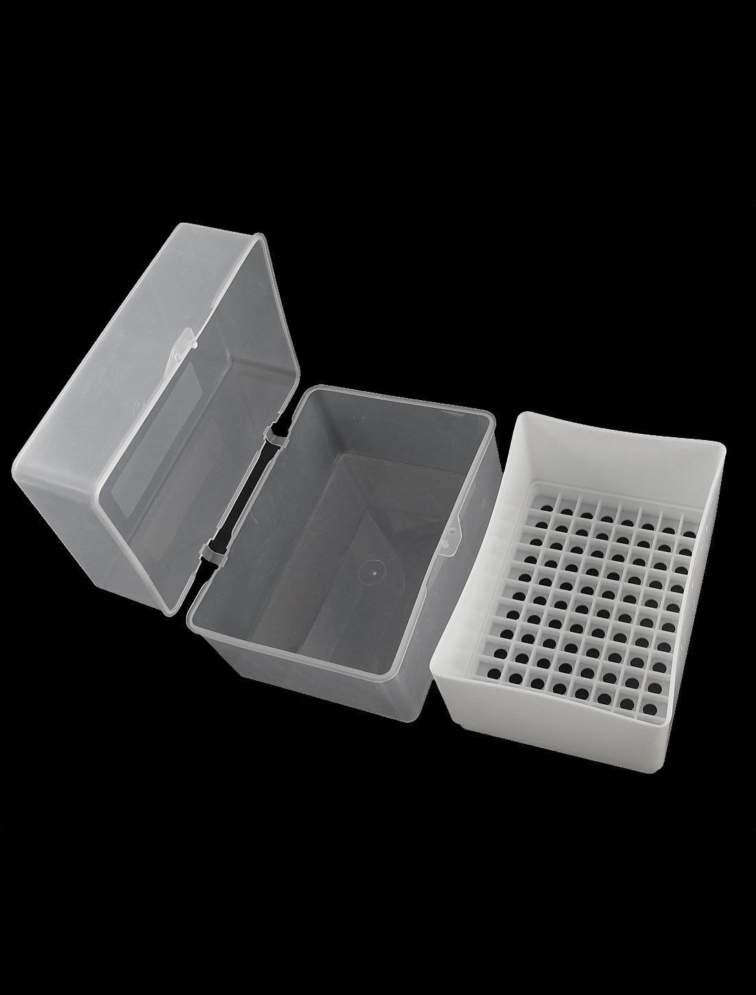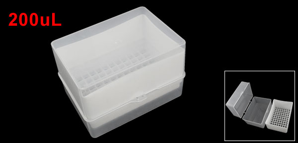 DetailsLaboratory 96 Positions 200uL Pipette Pipettor Tip Holder Box Case  Product Name Pipette Pipettor Tip Box Fit for 200uL Centrifuge Tube Color White, Clear Position 96 Positions Material Plastic Each Socket Diameter 5.3mm/ 0.21" Total Size(Approx) 120 x 87 x 80mm/ 4.7" x 3.4“ x 3.1" (L*W*H) Weight 90g Package 1 x Pipette Pipettor Tip Box