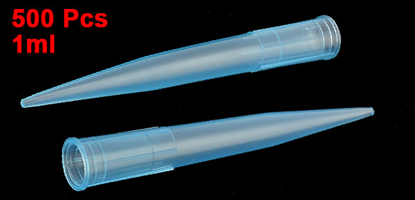 Product Name Pipette Tips Quantity 500 (±2%) Pcs Capacity 1mL/1000ul Material Plastic Color Clear Blue Top Inner Dia 7.4mm/0.29" Size 8.5 x 70mm/ 0.33" x 2.75" (Max.D*L) Net Weight 383g Package Content