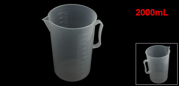 Laboratory Clear White Plastic Handle Water Liquid Measuring Cup 2000mL