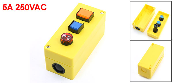 Buzzer Dia 1.8cm/0.7" Overall Size 9 x 6 x 5cm/3.5" x 2.4" x 2"(L*W*H) Shell Material Plastic Color Yellow, Red, Black, Orange, Blue Net Weight 67g Package Content 1 x Push Button Station - Reviews