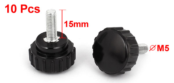 Product Name Knurled Knob Type Screw On Head Diameter 22mm /0.9" Male Thread Length 15mm /0.6" Male Thread Diameter M5 Total Height 29mm/ 1.1" Material Metal , Plastic Color Silver Tone, Black Net Weight 85g Package Content 10 x Knurled Knobs - Reviews