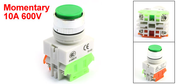 Product Name Push Button Switch Model LAY37-11 Contact Type SPDT Action Type Momentary Ith 10A Ui 600V Terminal Quantity 4 Panel Cutout Diameter 24mm / 0.94" Fit Panel Max. Thickness 8mm / 0.31" Button Diameter 24mm / 0.94" Total Size(Approx) 37 x 30 x 62mm / 1.5" x 1.2" x 2.4" (L*W*H) External Material Plastic, Metal Button Color Green Weight 35g Package Content 1 x Push Button Switch - Reviews
