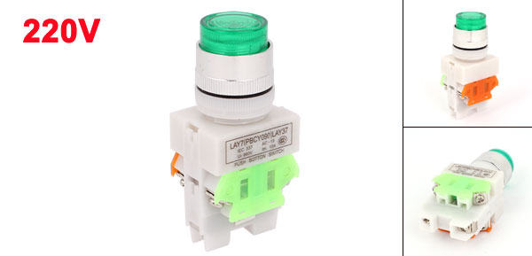 Main Color White, Green, Orange Brand DMiotech Country of Manufacture CHINA Action Type Momentary Fit Panel Max. Thickness 6mm / 0.24" Model LAY7 Terminal Quantity 6 Button Diameter 23mm/0.9" Material Plastic, Metal Contact Type 1NO 1NC (DPST) Ith 10A Ui 660V Product Name Push Button Switch Net Weight 49g Package Content 1 x Push Button Switch Light Color Green LED Voltage 220V Panel Diameter 23mm/0.9" Total Size(Approx) 8.5 x 3.5 x 3cm/3.3" x 1.4" x 1.2"(L*W*H) - Reviews