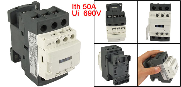 Product Name AC Contactor Model Number LC1D32M7C Material Plastic, Metal, Electrical Parts Rated Coil Voltage AC 220V, 50/60Hz Rated Operational Current 32A Ith 50A Ui 690V Uimp 6KV AC-3 Voltage 220/230V 380/400V 660/690V Power 7.5KW 15KW 18.5KW Number of Pole 3 Poles Contact 1NO+1NC Overall Size(Approx.) 85 x 45 x 93mm/ 3.3" x 1.8" x 3.7" (L*W*H) Color Gray, White Net Weight 382g Package Content 1 x AC Contactor - Reviews